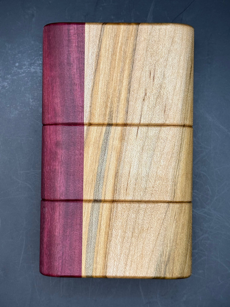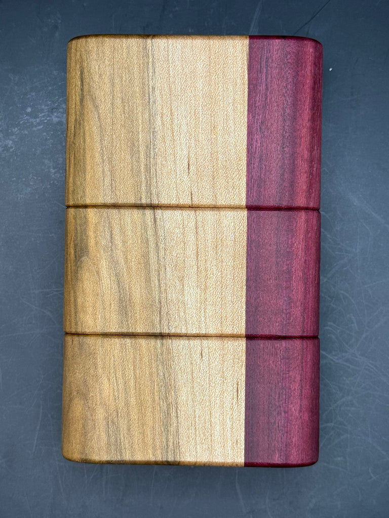 Ambrosia Maple with a purple heart bookend NOVA, comes with clear augmented glass.